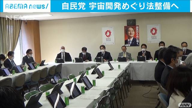 宇宙開発を巡っては、アメリカ主導で月探査などを行う「アルテミス計画」が進んでいるほか、ロシアや中国も力を入れていて、主導権争いが過熱しています。自民党は月の水や鉱物など宇宙空間にある天然資源の所有権を探索・採取した民間事業者に認めることで、宇宙産業への民間参入を促すのが狙いです。民間事業者は公表する事業計画に従って採掘することが条件となります。こうした法整備が遅れると日本企業の海外流出につながるため、自民党は立憲民主党などの野党と超党派で議員立法を提出し、この国会での成立を目指しています。