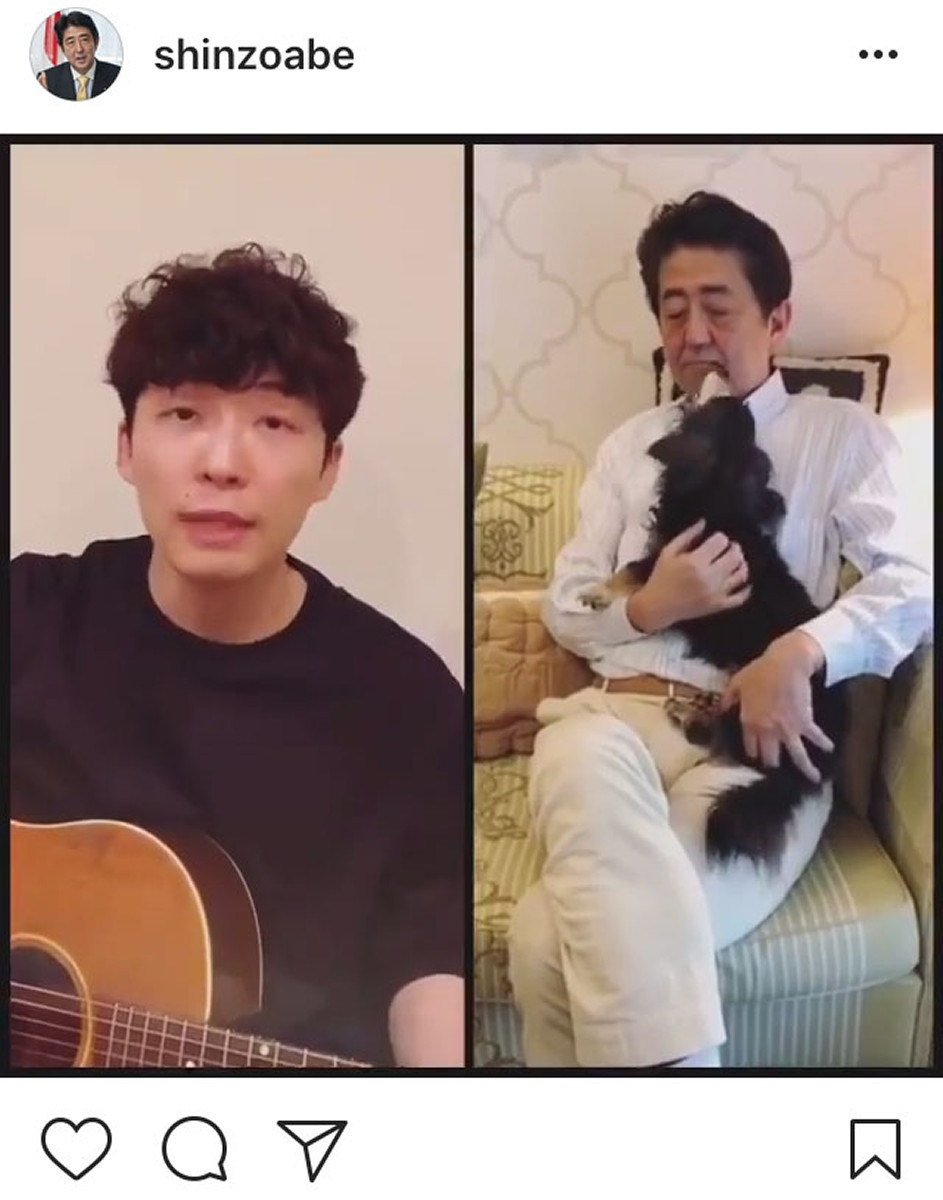 安倍晋三首相の公式インスタグラムが12日に更新され、歌手で俳優の星野源(39)が公開した「うちで踊ろう」とコラボした動画を公開した。