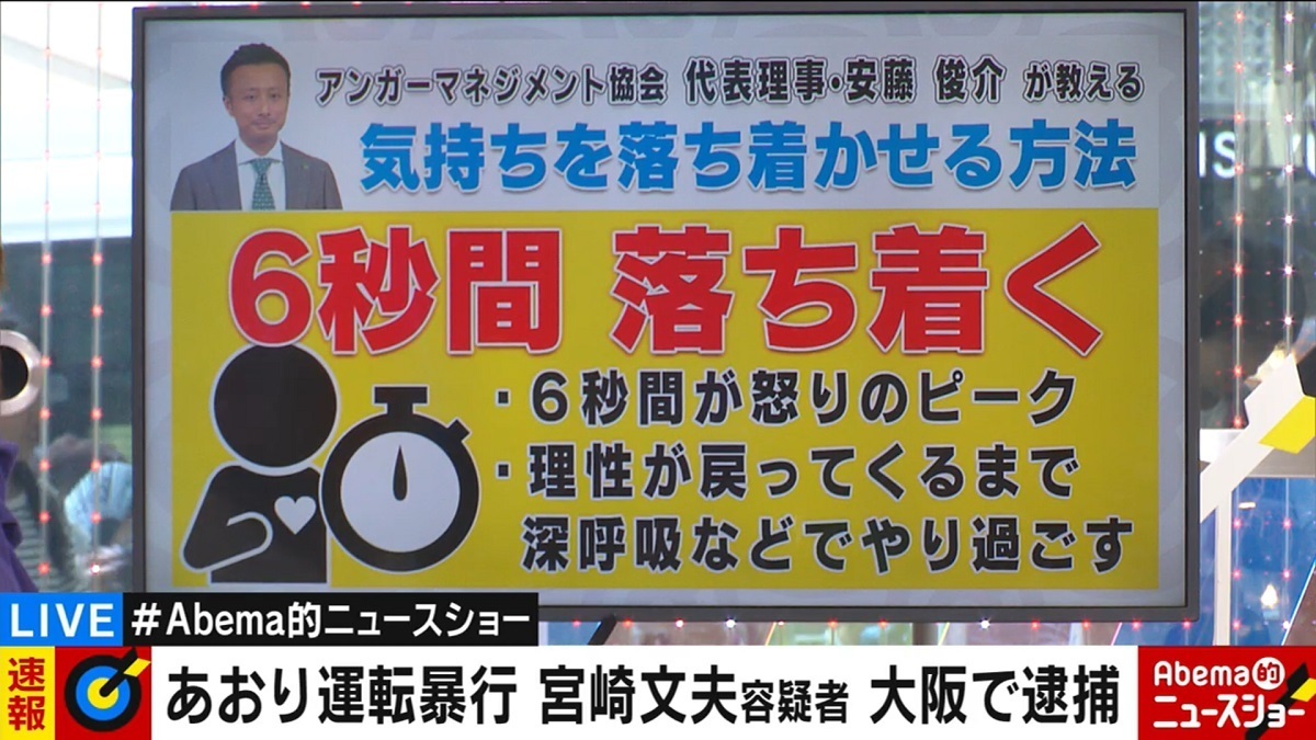 そんなあおりのきっかけになるイライラへの対処法について、日本アンガーマネジメント協会代表理事を務める安藤俊介氏は「とりあえず、6秒間落ち着く」という対処法を紹介する。安藤氏によると、怒りのピークは6秒間で、理性が戻ってくるまで深呼吸などでやり過ごすことが大事とのことだ。