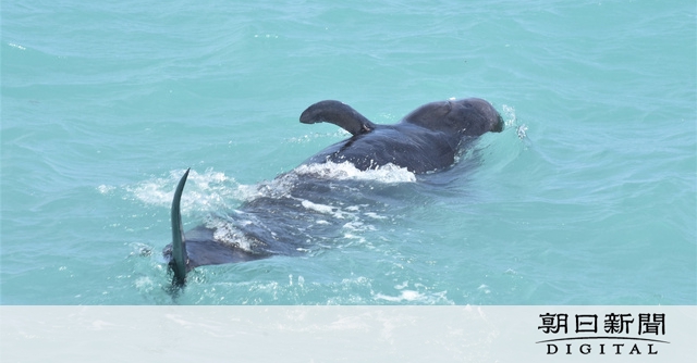 鹿児島県奄美大島北部の龍郷(たつごう)町の安木屋場(あんきゃば)海岸に16日、小型のクジラ「コビレゴンドウ」が打ち上げられた。呼吸をしていたため、住民らで海に戻そうと救助活動を続けたが、最後は力尽きた。近くでは赤ちゃんクジラも死んだ状態で見つかった。2頭は母子とみられる。