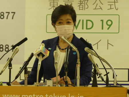 この日は定例会見で初めて、マスク姿で臨んだ小池氏。感染拡大防止に向け、夜間の外出自粛をあらためて要請するとともに、今週末の外出自粛も、あらためて都民に呼びかけた。