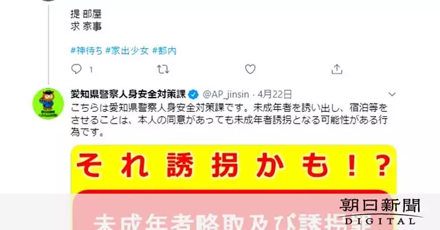 県警は、これらの投稿の書き込み主に「未成年者誘拐となる可能性がある行為です」などと警告している。5月以降は投稿件数が減少傾向にあるという。県警人身安全対策課の吉見文吾管理官は、「今後も状況の変化で投稿が増える可能性がある」とし、誘拐や性被害の被害にあう子どももいるとして、注意を呼びかけている。(村上友里)