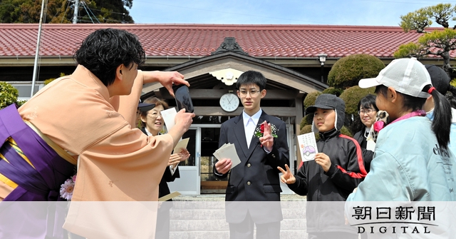 19日の卒業式で、最後の卒業生となった竹下峻都さん(12)が、2~5年の在校生4人と教職員10人の前で語った。「田峯小の先輩、田峯の子どもであることに自信と誇りをもって」。村松敦雄校長(54)は竹下さんにエールを送った。