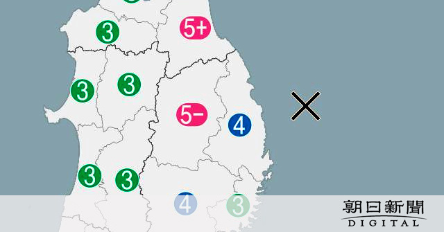 6日午前2時46分ごろ、岩手県沖を震源とする地震があり、青森県階上(はしかみ)町で最大震度5強を観測した。気象庁によると、地震の規模を示すマグニチュードは5・9、震源の深さは56キロ。津波の心配はないという。