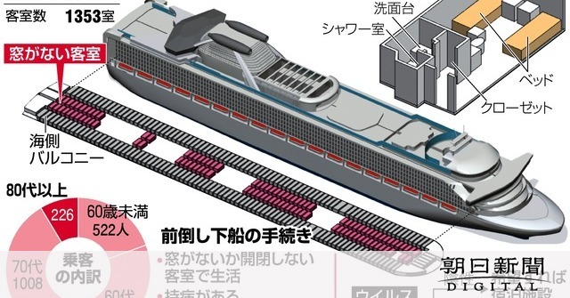 もともと乗客には高齢者が多く、持病がある人も少なくない。持病の薬がきれて、手元にないなど船内での不安が高まっていた。高齢者らの下船の検討もされたが、ウイルス検査の態勢や、検査で感染がわかった人の搬送先や下船した人の宿泊先の確保のメドが立たず、船内に留め置かざるを得ない状況が続いていた。