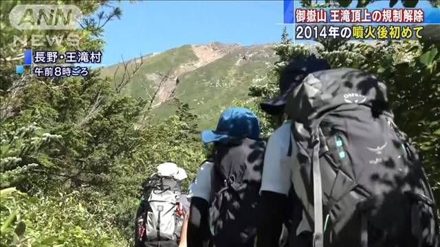 2014年の噴火で死者・行方不明者63人が出た長野県の御嶽山で、王滝頂上までの規制が噴火後、初めて解除されました。 長野県王滝村では1日午前8時前に規制が解除されると、登山客約70人が山頂を目指しました。