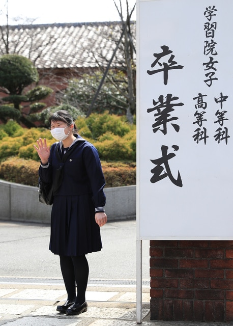 新型コロナウイルスの感染対策のため、愛子さまはマスク姿で登校。両陛下は卒業式に出席しなかった。