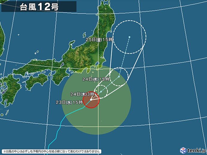 台風12号は愛知県からは離れた所を通る予想に変わりました。