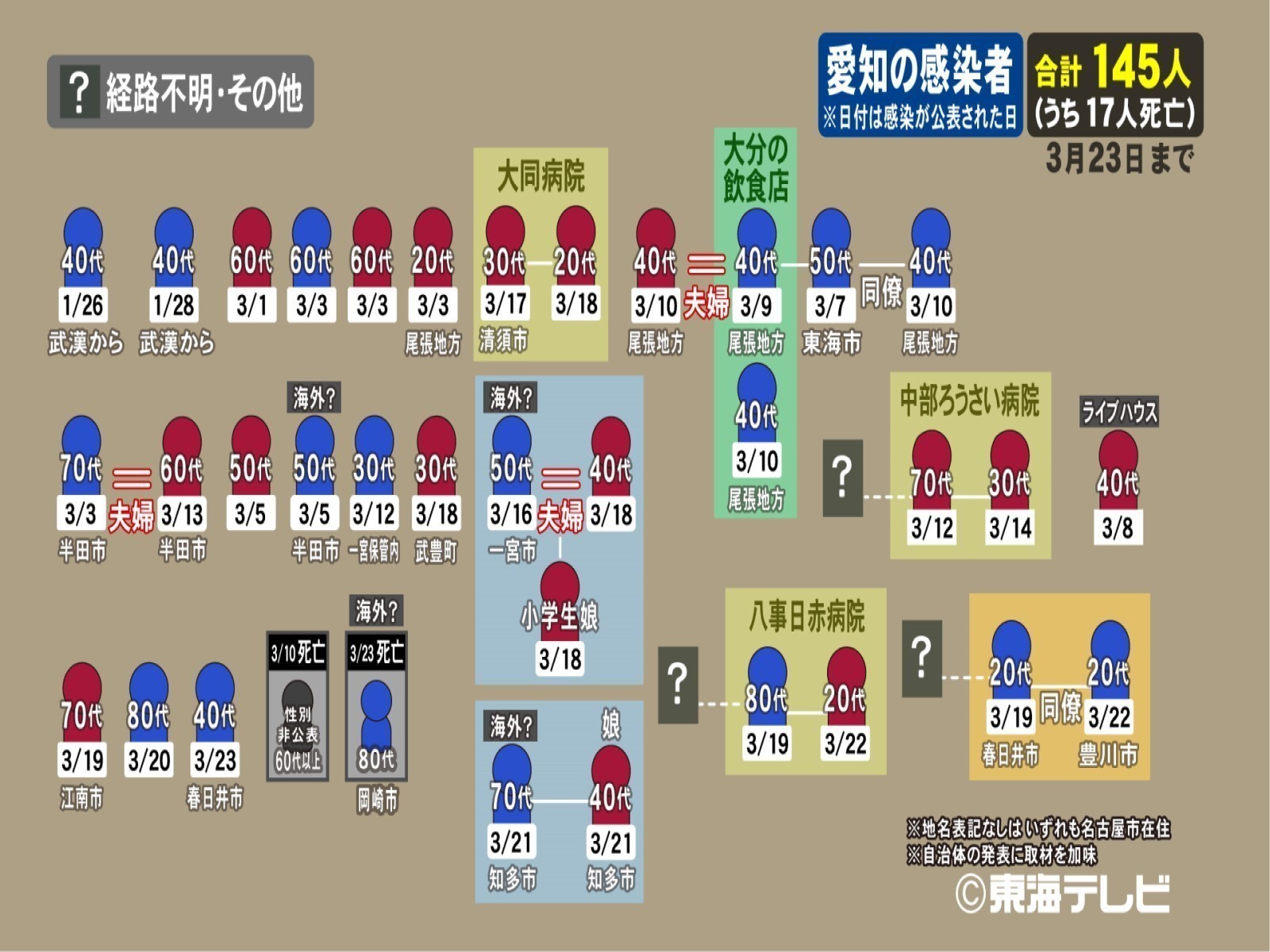 これで愛知県では死者17人、感染者は145人となりました。