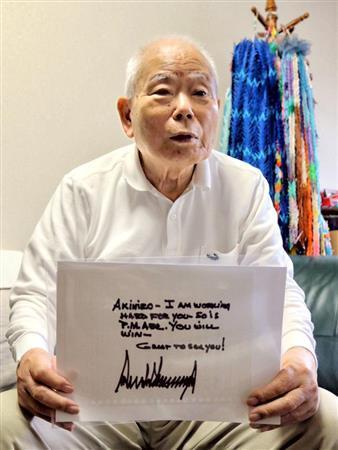 北朝鮮による拉致被害者の有本恵子さん(59)=拉致当時(23)=の父、明弘さん(90)宛てに米国のトランプ大統領から解決への尽力を誓う直筆の手紙が届いたことが15日、分かった。被害者帰国へ後押しを切望する明弘さんの私信に応えたもので、明弘さんは「拉致問題が解決すると信じている。トランプ大統領はきっと、その道を進んでくれるはずだ」と力を込めた。