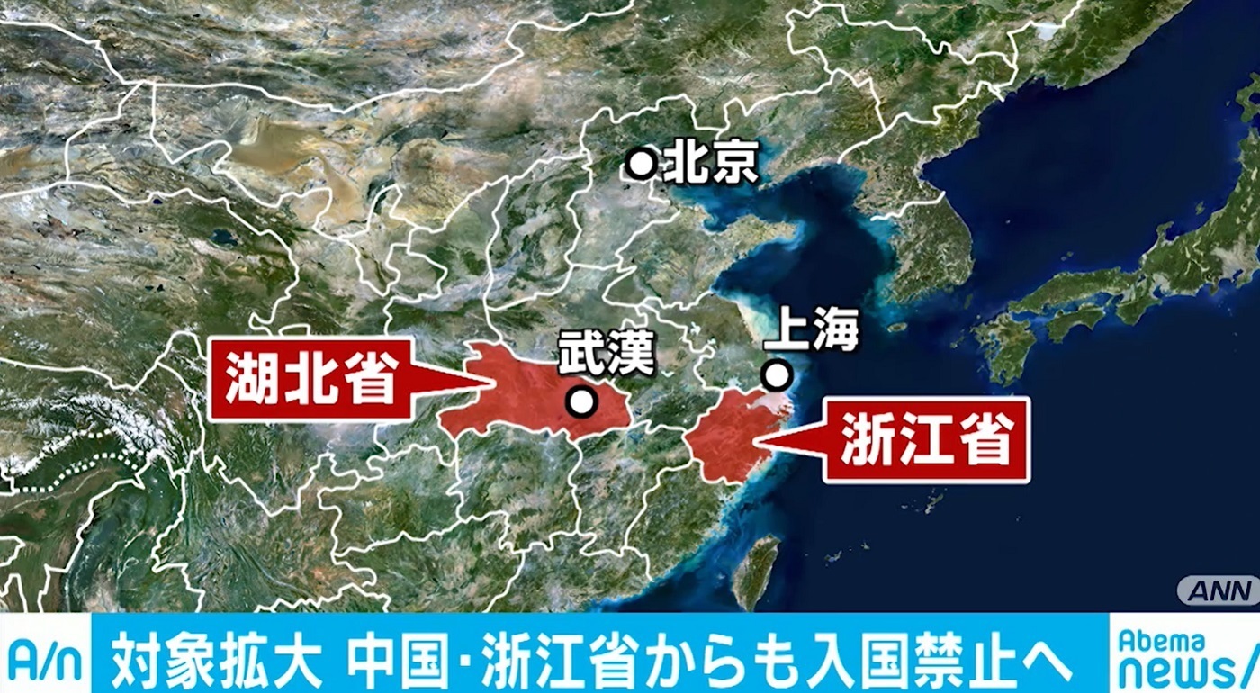 現在日本政府は、過去2週間以内に武漢市のある湖北省に滞在歴のある外国人の滞在を拒否しているが、新たに浙江省も入国拒否の対象に加える方向で検討しているということだ。