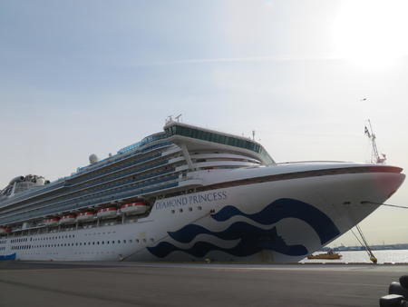 同船は8日朝、船内で飲む真水の精製、船体を安定させる重しの目的で船底に積むバラスト水の管理、船内で処理した汚水の排水など、運航に必要な作業を行うため、接岸していた横浜・大黒ふ頭を離れて外海に出た。同日午後の船内アナウンスでは、高熱を出していた米国籍1人、中国籍1人から感染が確認され、2人は船が外海に出る前に病院に搬送されたことが乗客に知らされた。