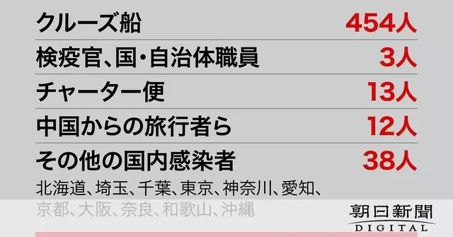 厚労省によると、クルーズ船で確認された99人のうち43人は日本人。70人は特に症状がないという。3711人いた乗員乗客のうち、454人の感染が確認されたことになる。