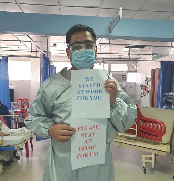 「新型コロナウイルスの治療にあたる私たち医師も人間で、他の人々と同じように感染する可能性もある。しかし私たち医療関係者は病院に残り、治療を続ける。だから皆さんにはどうか、外出せずに家にいてほしいんです」