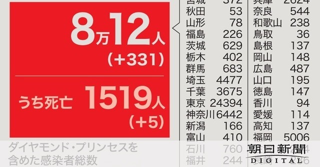 新型コロナウイルスの国内の感染者は22日午後9時現在で、新たに331人が確認された。死者は5人増えた。