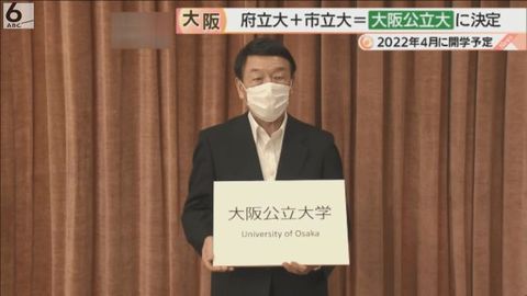 大阪府立大学と大阪市立大学が統合してできる新しい大学の名前が、「大阪公立大学」に決まりました。 新しい大学の名前は「これまでの歴史とブランドにふさわしく、多くの人に納得してもらえる」という理由などから「大阪公立大学」に決まりました。大阪城の隣りにある森之宮地区の市有地に約1000億円かけて新たなキャンパスを構える方針で、入学定員は約2800人と、全国の国公立大学で3番目に大きな規模になる予定です。松井市長は「世界中の人が、若い研究者、学生がスキルアップできる研究の中身を作っていってもらえることを期待しています」と話しました。大阪公立大学は世界大学ランク200位以内を目標にし、2022年4月の開校を目指します。
