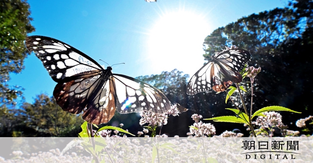 アサギマダラは夏を過ごす北海道から、南西諸島、台湾などに越冬する「あさぎ色」のチョウ。全国各地の飛来地では、市民団体によるマーキング調査が行われており、チョウの羽には、油性ペンで捕獲した場所、日付などが書き込まれている。調査によると、秋の南下の際には、2千キロ以上移動する個体も確認されているという。