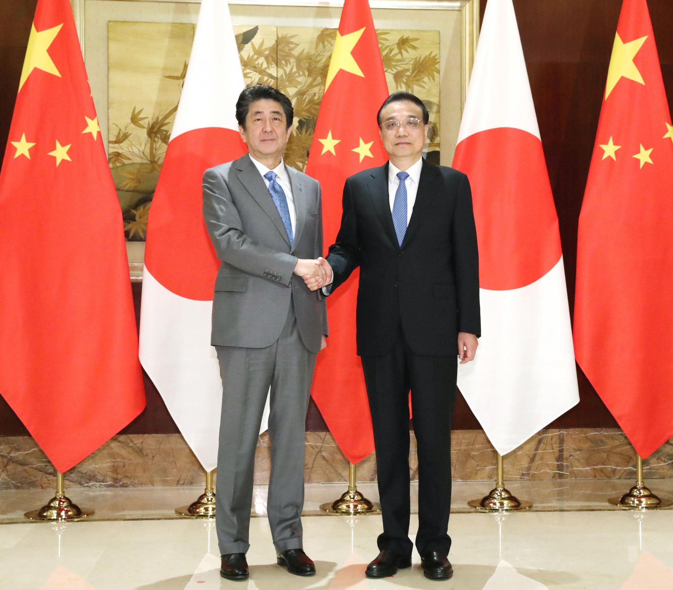 安倍首相は会談の冒頭で「日中関係は順調に改善している。習主席の国賓訪日の成功に向け、大局的で忌憚のない意見交換をしたい」と表明。李首相は「中日両国は地域の重要な大国であり、健全かつ安定的な関係発展を希望する」と述べた。