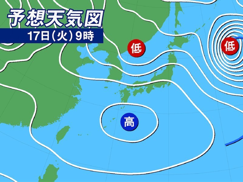 今夜以降は西から移動性高気圧の圏内となるため、今夜から明日17日(火)朝にかけては晴れて放射冷却が強まり冷え込みます。