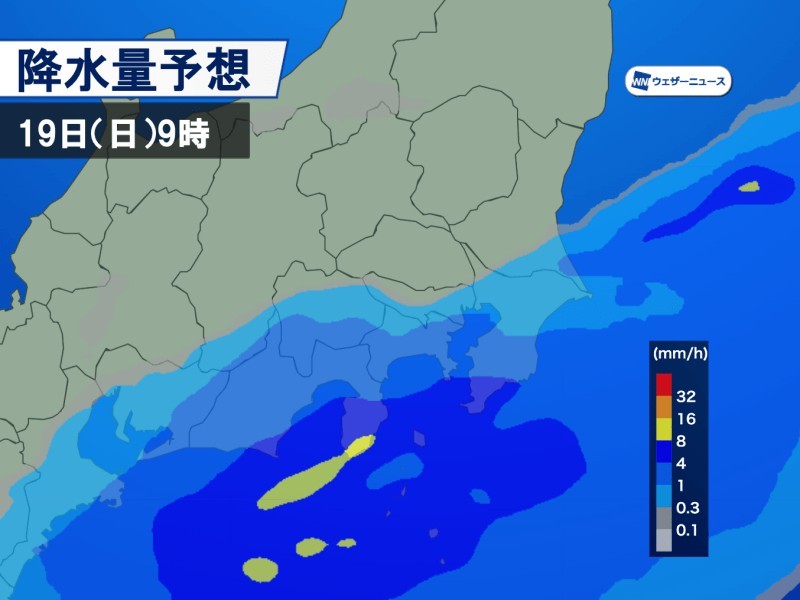 明日19日(日)は梅雨前線上の低気圧が東に進みながら、関東沖を通過します。 低気圧の進路についてはまだ不確実性がありますが、北寄りに進むと東京を含む関東南部や伊豆半島では今朝のような強雨に見舞われる可能性があります。