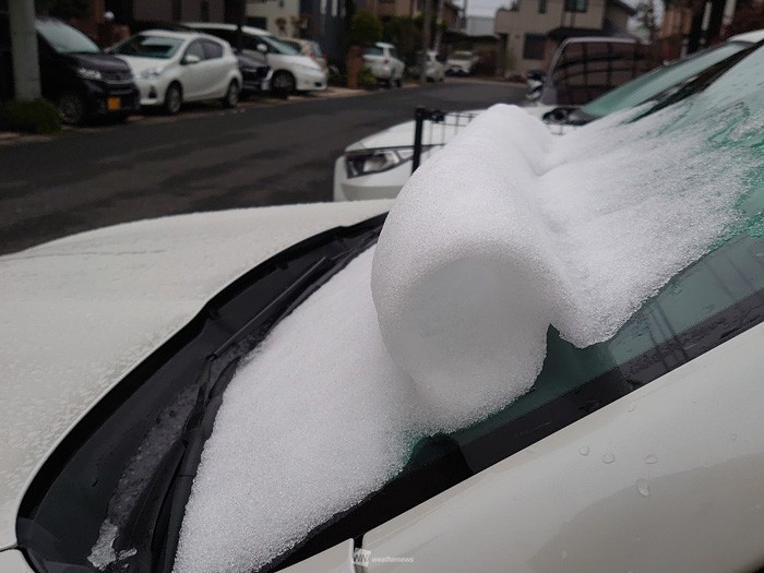 車のフロントガラスに雪が積もったままになっていたり、屋根から雪が滑り落ちようとしている様子も見受けられました。