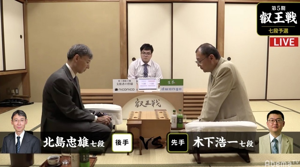 将棋の叡王戦段位別予選が7月29日に行われ、木下浩一七段(51)と北島忠雄七段(53)が現在対局中だ。