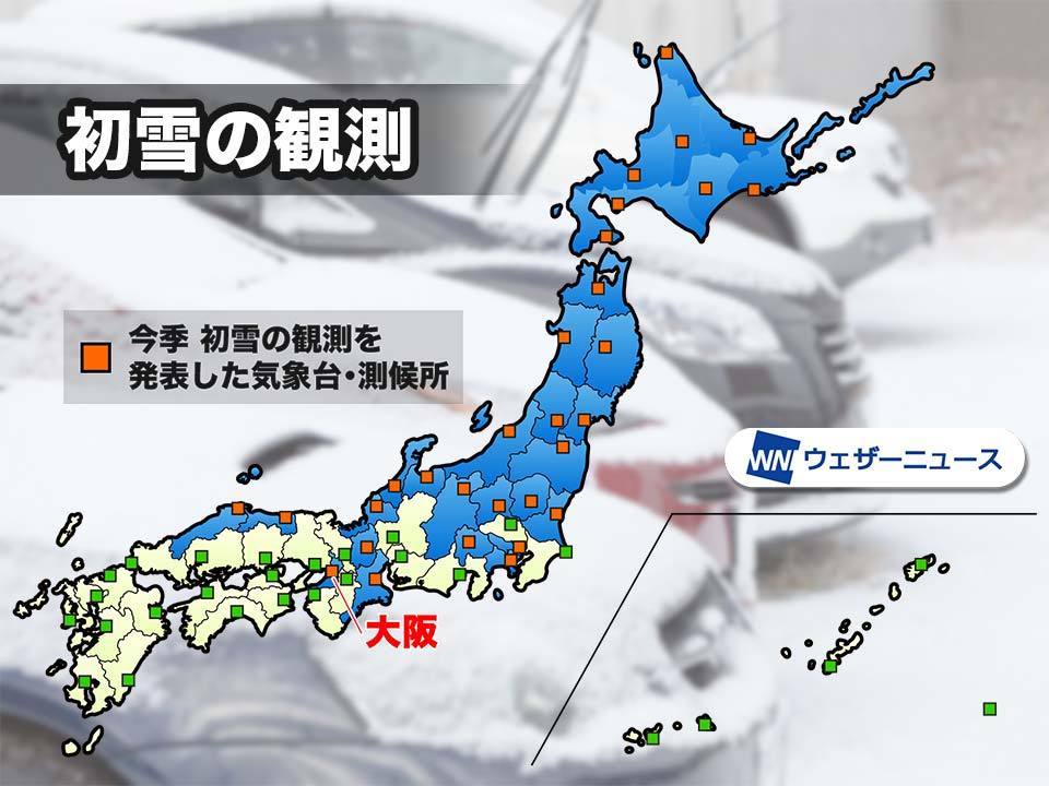 昨夜の東京に続き、今朝は大阪で初雪を観測しました。1月5日の観測は平年より14日、昨シーズンより8日遅い観測です。