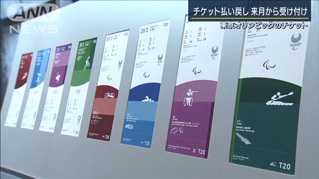 来年に延期となった東京オリンピック・パラリンピックの観戦チケットについて、希望者への払い戻しの申請受付が来月10日から始まります。大会組織委員会によりますと、払い戻しの受付期間は、オリンピックが11月10日~30日まで、パラリンピックが12月1日~21日までということです。 払い戻しの申請は、チケットの購入者のみが公式販売サイトで行うことができます。すでに販売されたチケットは、来年に延期された大会でも有効です。今後の新型コロナウイルスの感染状況によって、観戦の機会を提供できなくなった場合は、別途払い戻しを実施するといいます。