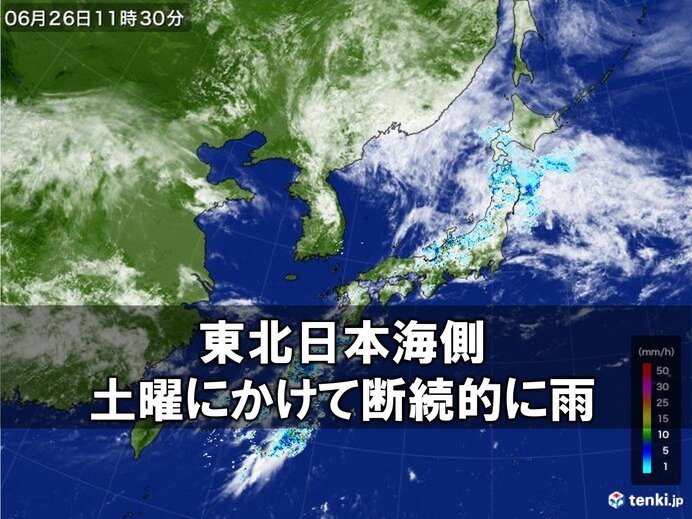 東北地方はあす27日(土)にかけて、雨が日本海側北部を中心に断続的に降るでしょう。太平洋側は27日(土)は日が差しそうです。蒸し暑くなりますので、熱中症にご注意ください。