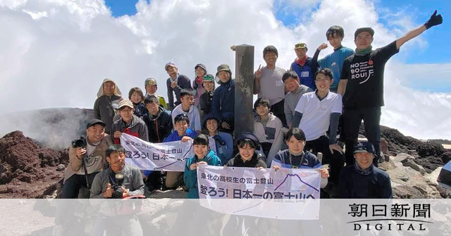 女性として初のエベレスト登頂に成功した登山家の故・田部井淳子さんが東北復興のためにと力を注ぎ、全国からの支援で続いてきた「東北の高校生の富士登山」(田部井淳子基金主催、朝日新聞社など後援)が2年ぶりに開催され、参加した福島と宮城の高校生14人全員が28日午前、日本一の頂に立った。