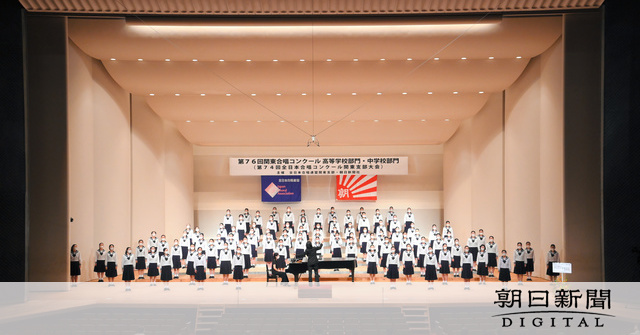 第76回関東合唱コンクール(全日本合唱連盟関東支部、朝日新聞社主催)が18日、さいたま市文化センターで始まった。この日は高校部門があり、茨城、栃木、群馬、埼玉、千葉、神奈川、新潟、山梨、静岡の9県の代表計35団体が参加。9団体は音源審査だった。入れ替え制で有観客で開催した。審査の結果、高校A(8人以上32人以下)は清泉女学院高(神奈川)、真岡女子高(栃木)、高校B(33人以上)は松山女子高(埼玉)、叡明高(埼玉)、幕張総合高(千葉)、星野高(埼玉)が10月30日に大分市で行われる全日本合唱コンクールの関東代表に選ばれた。高校部門の最優秀賞にあたる関東支部長賞は松山女子高に贈られた。