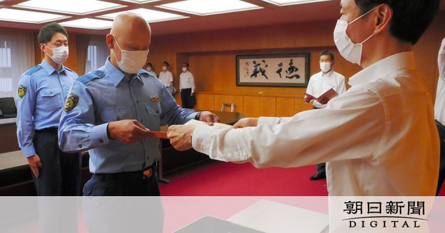 川に落ちた女性を救ったとして、大阪府警は14日、警察官2人に本部長賞を授与した。2人は違う日に別々の事案で救助。いずれも台風が迫り、川の水かさが増している時だった。表彰を受け、2人は「警察官として誇らしい」と話した。