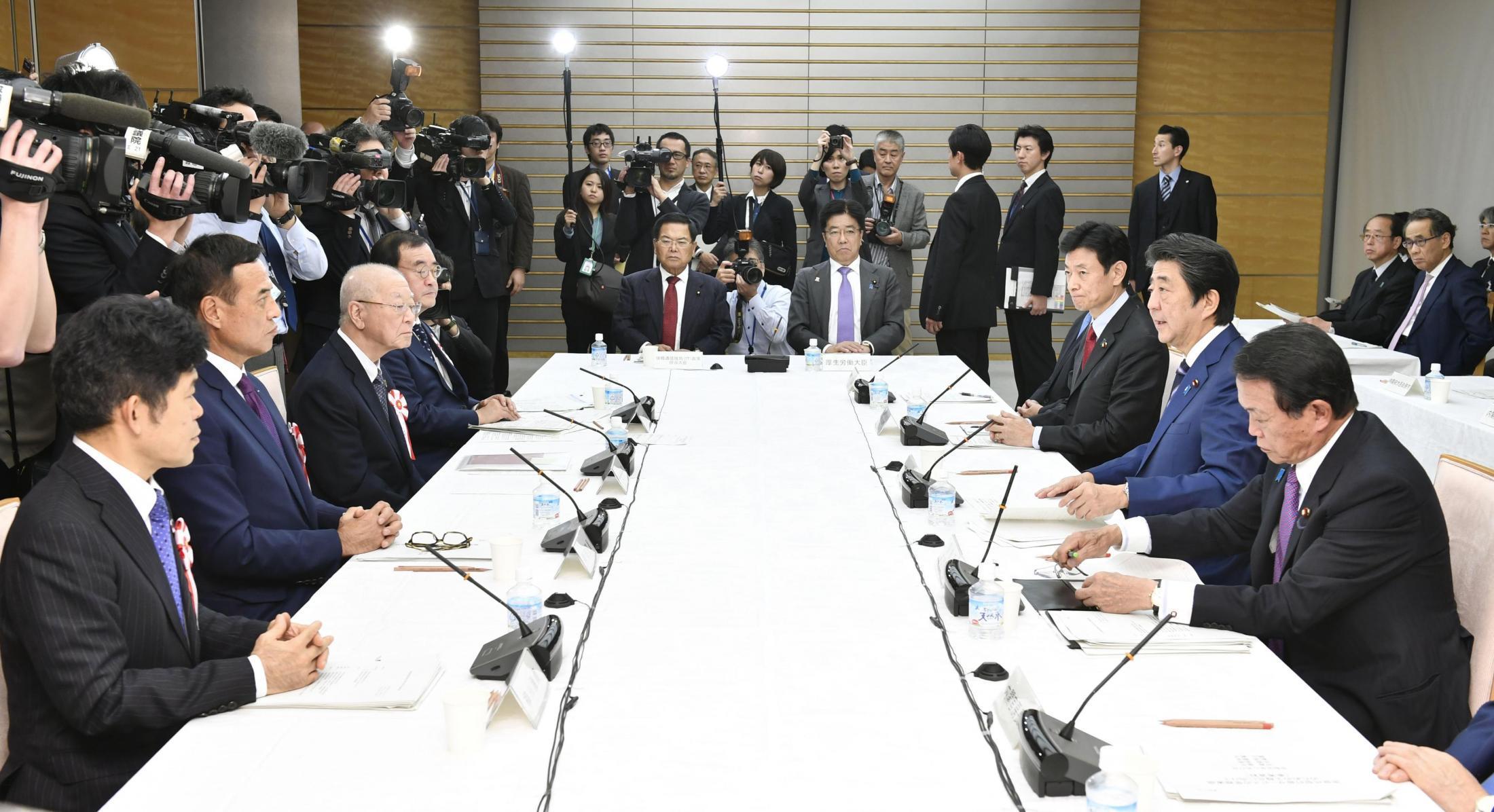 政府は27日、経済財政諮問会議を開き、2020年度予算編成の基本方針案を示した。米中貿易摩擦や東京五輪後の景気の下振れリスクに備えるため、19年度補正予算などを含め「当面の需要喚起にとどまらず、民需主導の持続的な経済成長の実現につなげる」と明記。水害対策を中心に「国土強靱化をさらに強力に進める」とした。