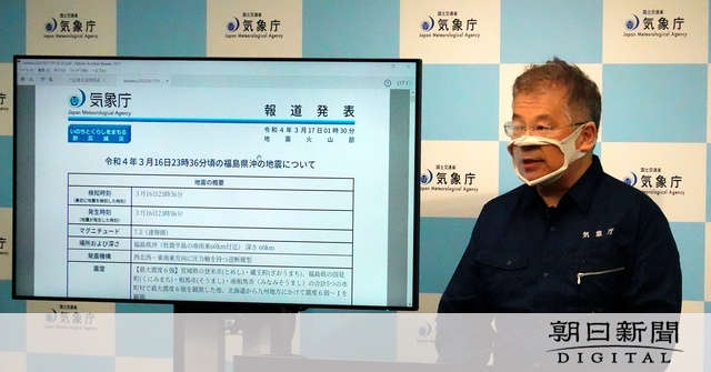 震源は福島県沖の深さ60キロで、2011年の東日本大震災の余震域内。陸側の北米プレートの下へ沈み込む海側の太平洋プレート内部で発生した地震とみられるという。