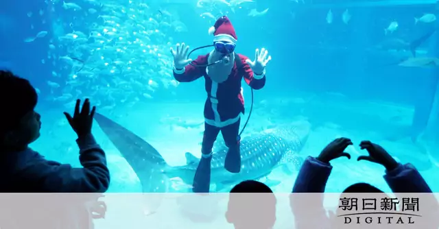 同館最大の「太平洋」水槽では午後1時15分と午後3時30分からの2回、「タスマン海」水槽では午前11時から、それぞれ30分ほどサンタダイバーが現れる。25日まで。(西晃奈)