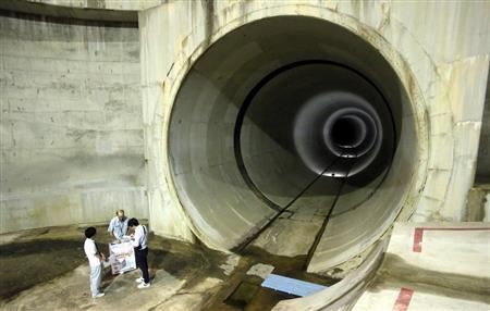 昭和56年に工事が始まり、平成23年に東大阪-大阪市阿倍野区間の供用を開始した。最終的に大阪湾に注ぐ木津川河口付近までの2キロをつなぎ、25年後に完成予定。施設を有効活用するため、現在は最大63万立方メートルを貯水し、川の水位が安全なレベルまで下がれば放出する「調節池」として使用している。