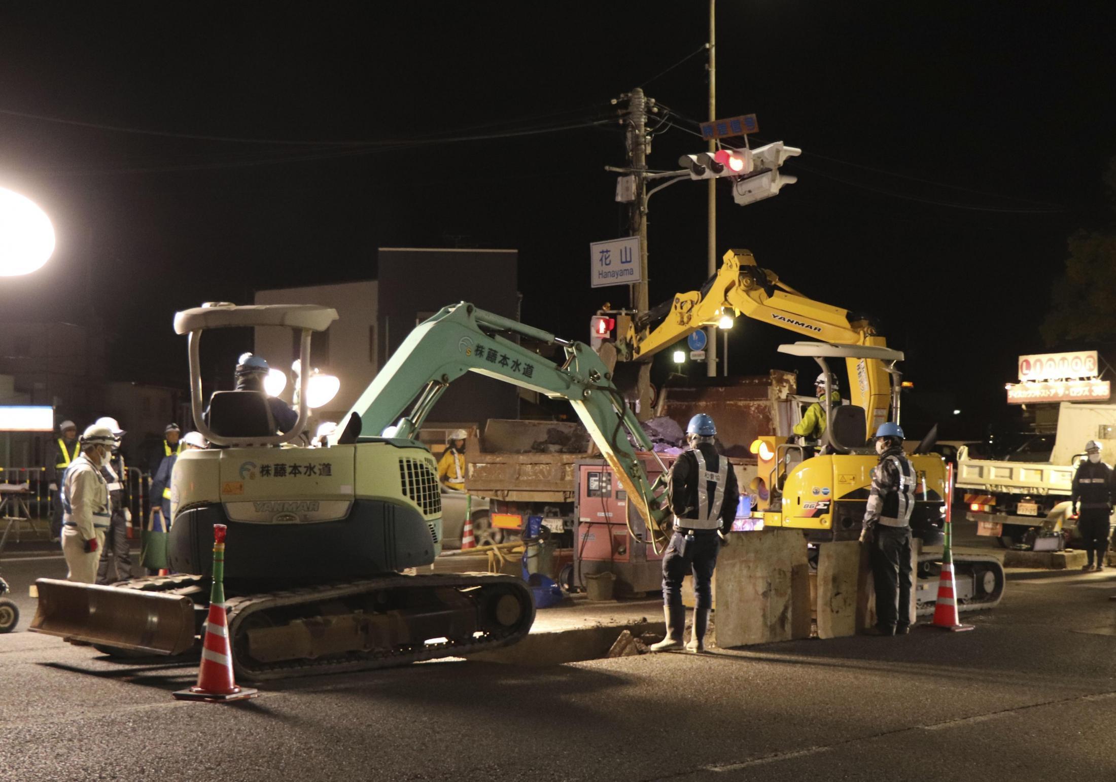 破損したとみられる水道管の工事のため、最長3日間の断水が予定されている和歌山市で19日、掘削に向けた工事が始まった。市によると、午後10時ごろには水道管の水圧を下げるためバルブを締める予定で、市南東の一部地域、約3万5千世帯(約8万人)に影響する。20日午前9時半から対象地域の小学校などで給水車を配置し対応する。