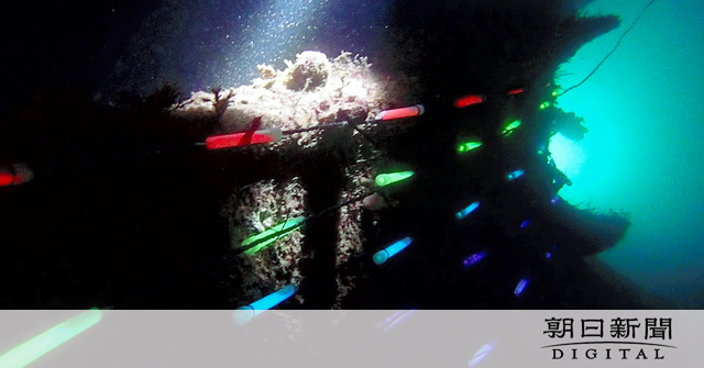 この日、スタッフらが沈船の船首付近を中心に大光量ライトや数百本のケミカルライトを設置。日没後、2隻のボートに乗り込んだダイバーらが潜り、赤や緑、青などのライトで飾られた沈船や光に照らされ泳ぐ魚などを堪能した。スタッフは「ライトアップでみんなの遊びを明るくできたら」と話していた。(勝部真一)