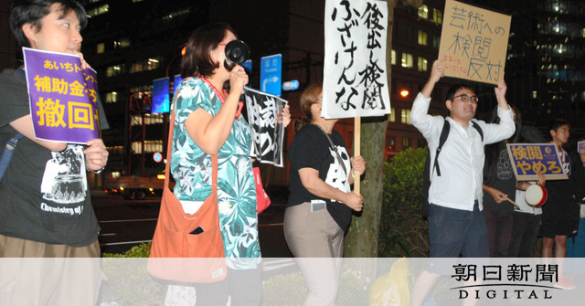 参加作家で、企画展中止に抗議して展示を変更した田中功起さん(43)は「検閲は通常事前に行われる。日本では自主規制という体裁でソフトに行われてきた。これは新しい検閲のあり方だ」と批判した。企画展に出展していた白川昌生さん(71)は「ある種の文化統制だ」。表現の自由の問題が分岐点にあると感じ、「乗り切れるのか、それとも自由を放棄するのかの瀬戸際だ。政治的なにおいに危機感を覚える」。全作品の展示再開を目指す「ReFreedom_Aichi」プロジェクトに参加するユニット「キュンチョメ」のホンマエリさん(31)も「全ての表現活動を脅かす、最低の判断」と憤る。同プロジェクトは26日夜、インターネットの署名サイト「Change.org」で文化庁の決定撤回を求める署名を始めた。