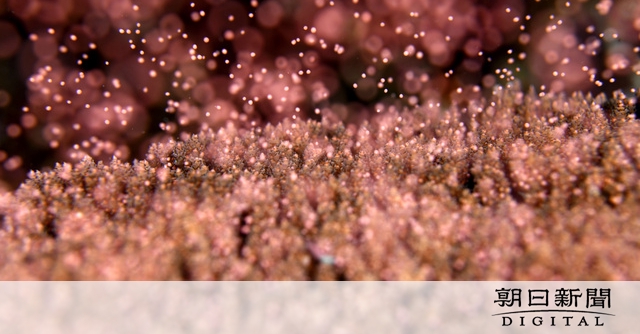 峰さんによると、午後10時過ぎ、水深約10メートルの海底に広がるサンゴが一斉に産卵を始めた。ピンク色で直径約一ミリの卵は海中を浮遊し、卵を食べようと小魚が集まっていたという。