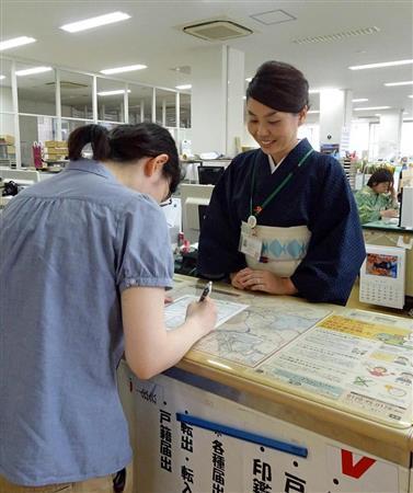 この日、与謝野町役場では、一部の女性職員らが浴衣姿で町民らに対応。自前の浴衣で窓口業務をこなした住民環境課の女性職員(33)は「来庁者のみなさんからは『涼しく見える』や『夏らしくて良い』などの声をいただいた。浴衣を着る機会を増やしたい」と話していた。