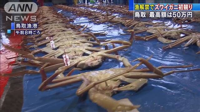 6日に解禁になったズワイガニ漁の初競りが鳥取県の漁港で行われました。 県の最高級ブランド「五輝星」の今年の最高額は50万円でした。去年は過去最高の500万円でしたが、県によりますと、新型コロナウイルスの影響もあるということです。鳥取県岩美町では、7日から宿泊とカニ料理をセットにしたキャンペーンで最大1万円がキャッシュバックされるということです。