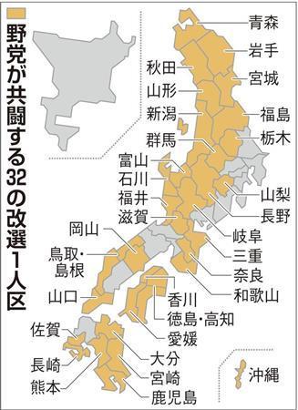 平成25年参院選で自民は1人区で29勝2敗(当時は31選挙区)と大勝した。ただ、28年参院選は野党の候補者一本化もあって、21勝11敗と勝率を下げた。