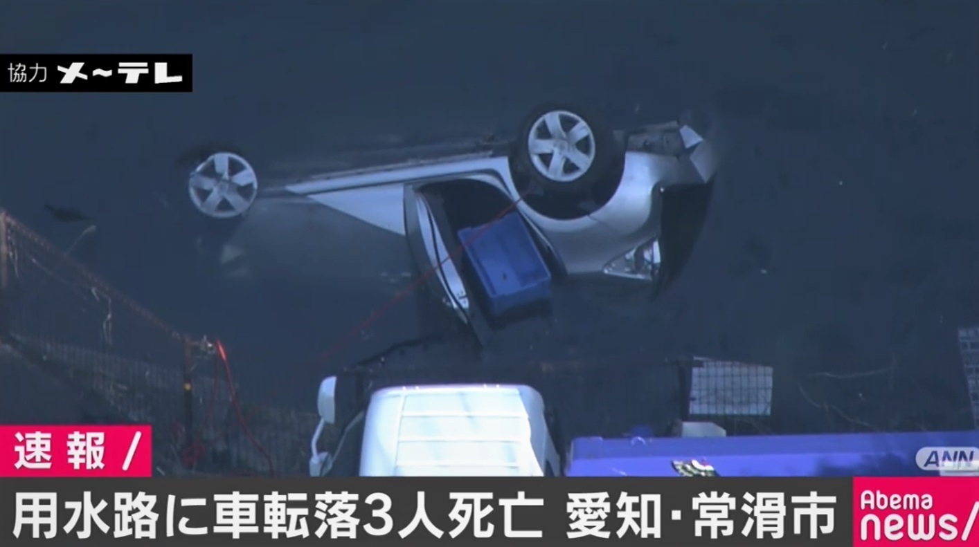 午後0時40分ごろ常滑市久米の愛知用水で「車が用水路に転落している」と通行人から消防に通報があった。警察によると、乗用車には70代ぐらいの男女と40代ぐらいの男性の合わせて3人が乗っていて、病院に運ばれたが3人とも死亡した。
