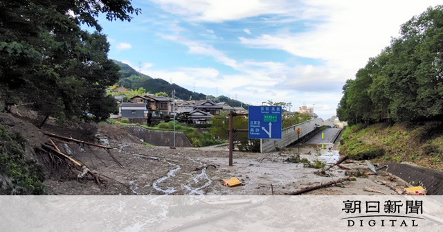 市によると、土砂の流入は14日午後3時ごろと午後4時ごろ、午後5時ごろの計3回起きた。福井方面に向かうバイパスの乗り口と降り口などに約5千立方メートルの土砂が流入。ランプに面する山肌が大きくえぐられており、約80メートルの高さから土砂が滑り下ったという。