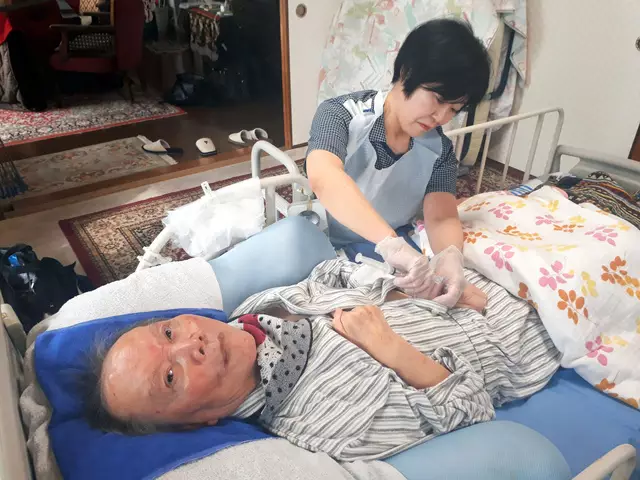 大阪府吹田市のマンション。市内の「協和訪問看護ステーション」の看護師である畑中恵子さん(50)が、ベッドに寝たきりの男性(85)に歩み寄った。