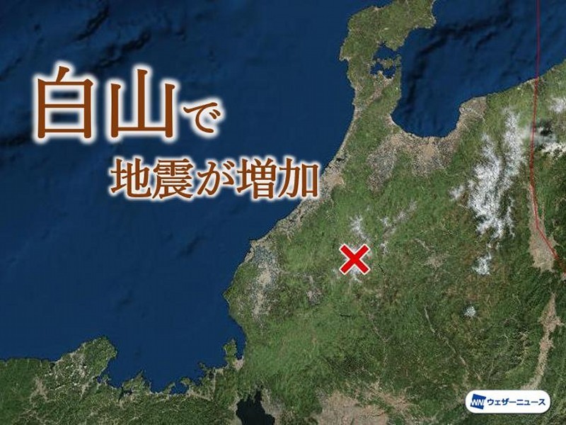 石川県と岐阜県の県境に位置する白山で地震が増加しています。