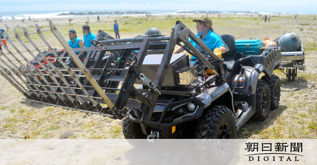 カナダ製の6輪バギーを特注で輸入した。林業や米軍でも使われている全地形対応車だ。改造して四角いカゴ部分を連結し、爪で地表の砂をかき出して、木の枝やプラスチック片をさらう。今年3月に特許も取得。砂浜の生態系を傷つけないよう、改良を重ねた。