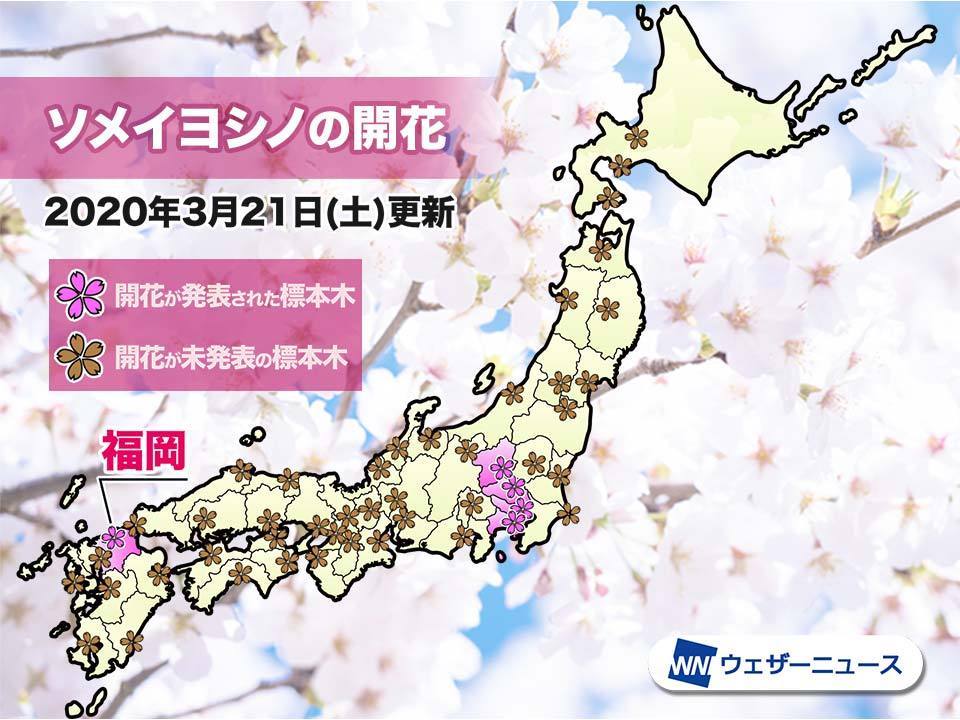 今日21日(土)、福岡で桜が開花しました。福岡のソメイヨシノ開花は平年より2日早く、去年とは同じです。