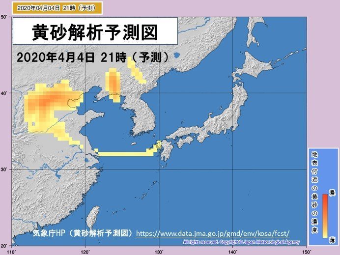 きのう4月4日(土)の夜中から日付をまたいで、福岡管区気象台で黄砂が観測されました。国内で黄砂が観測されるのは今年初めてで、2019年11月2日以来です。